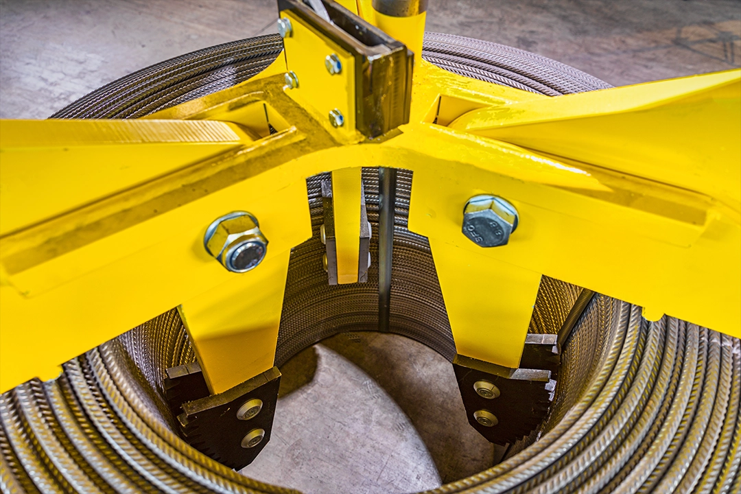 3-Arm-Innengreifer mit Schrittschalt-automatik, um die Draht-Coils auch übereinander stapeln zu können.