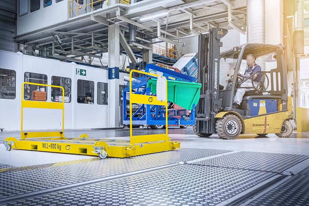 Aufnahmegestelle für die Blechbauteile sollen innerbetrieblich transportiert werden.